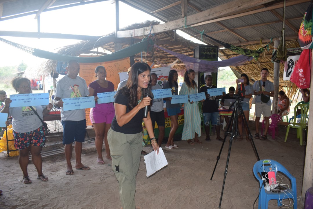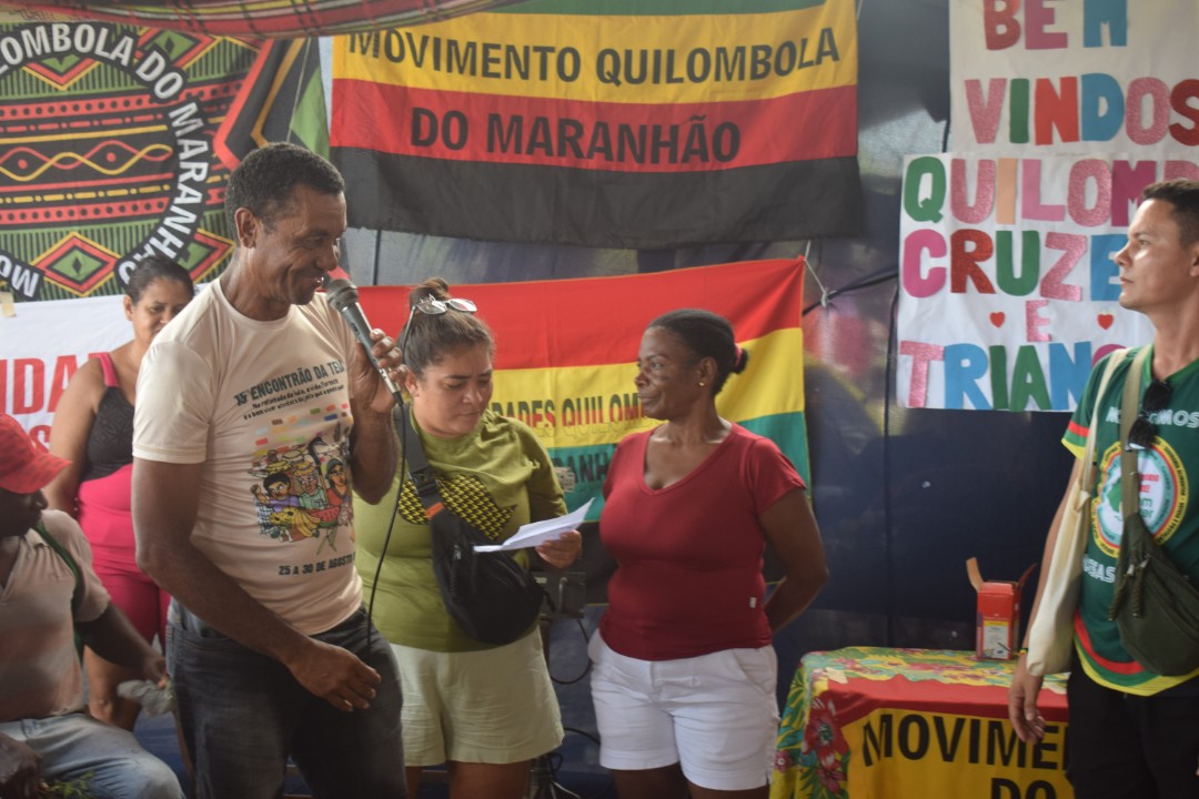 Encontro do Movimento Quilombola do Maranhão debate estratégias para regularização fundiária Durante os dias 23 a 26 de janeiro, cerca de 200 pessoas, participaram do Encontro do Movimento Quilombola do Maranhão intitulado Desafios para a efetivação do Direito à Titulação dos Territórios Quilombolas. A atividade foi realizada nas comunidades Cruzeiro e Triângulo, em Palmeirândia, na Baixada Maranhense. O objetivo foi definir estratégias de atuação que assegurem o acesso livre dos quilombolas aos territórios maranhenses.
